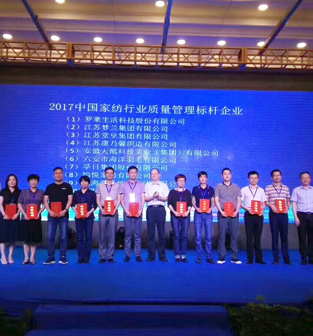 堂皇榮獲“2017中國家紡行業(yè)質(zhì)量管理標桿企業(yè)”